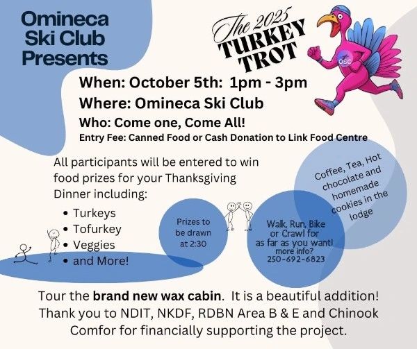 Walk, Run, Bike or Crawl for as far as you want! more info? 250-692-6823